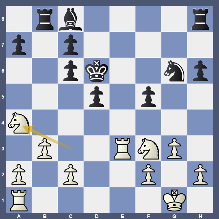Да је сада бели одиграо 19. Са4 тада би поново вратио предност јер би црни морао стално да размишља како да одбрани свог пешака б6 а да га не гура напред стварајући слабост на ц5 и последично, потенцијалног белог слободњака на ц-линији који би се тешко могао зауставити. Али бели је играо: